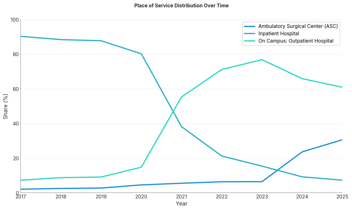 Inpatient hospital dropped from 70.4% to 8.3% over that same period. Same directional story, just a different pace.