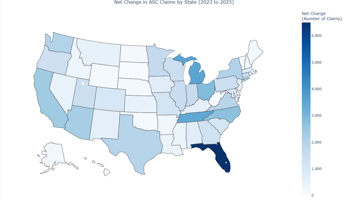 In terms of volume, Florida alone added nearly 6,500 shoulder replacement claims in the ASC setting in 2025 compared to 2023, and that’s as we await complete 2025 Medicare data from CMS (MedScout doesn't blend estimates/projections with real-world data).